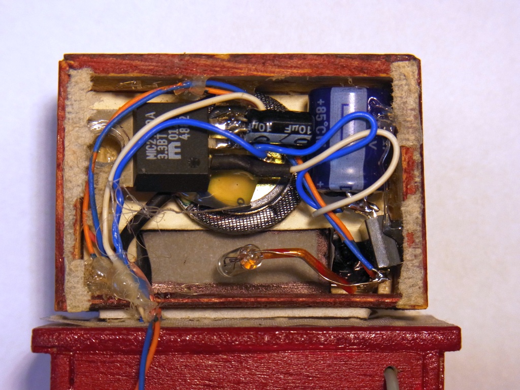 Ein fester Sender, eine Lautstärke, betrieben mit den 12V der Puppenhausbeleuchtung.